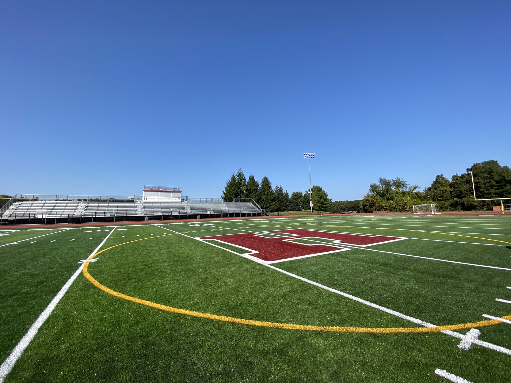 The LandTek Group recently completed a field upgrade for Harrison High School. The synthetic multipurpose field was over ten years old and in need of improvements. Scope of work included, removal of existing turf, laser grading of sub base, and 100,000 Sq.ft synthetic turf installation. The upgraded new color endzones match the schools colors giving the field an enhanced school spirit.